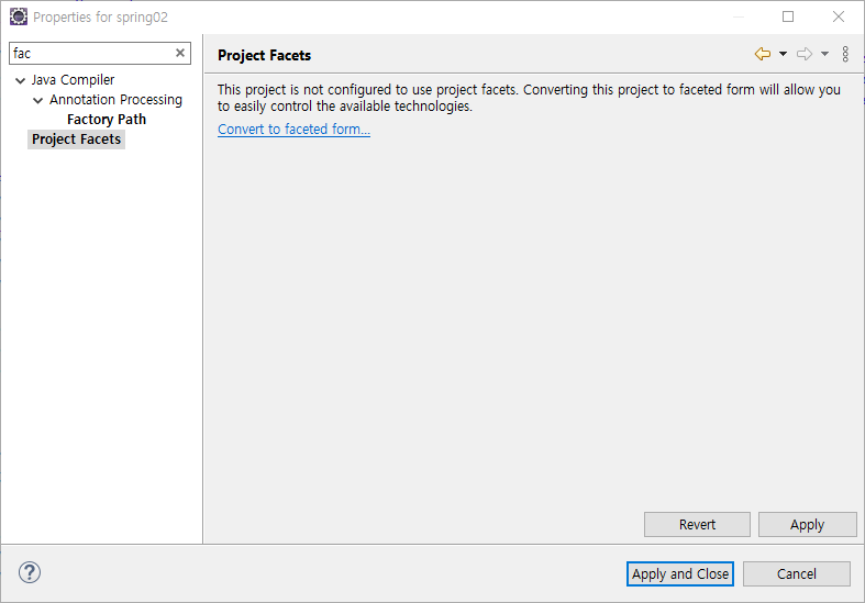 웹에서 게시판을 구현하는 것이 목적이기 때문에 그레이들로 생성한 프로젝트 속성에서 (프로젝트에 대고 오른쪽 마우스 > 프로퍼티스) 웹 다이나믹 프로젝트 페싯 (대충 유형이라는 뜻)을 추가해준다. 체크 후 Apply and Close