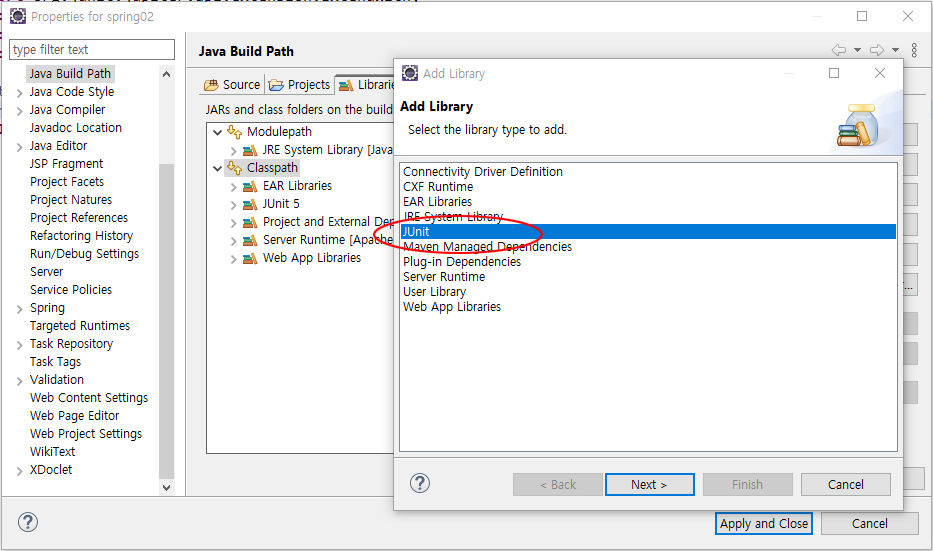 2. 프로젝트 빌드패스 > 클래스 패스 > Add Library > Server Runtime 추가